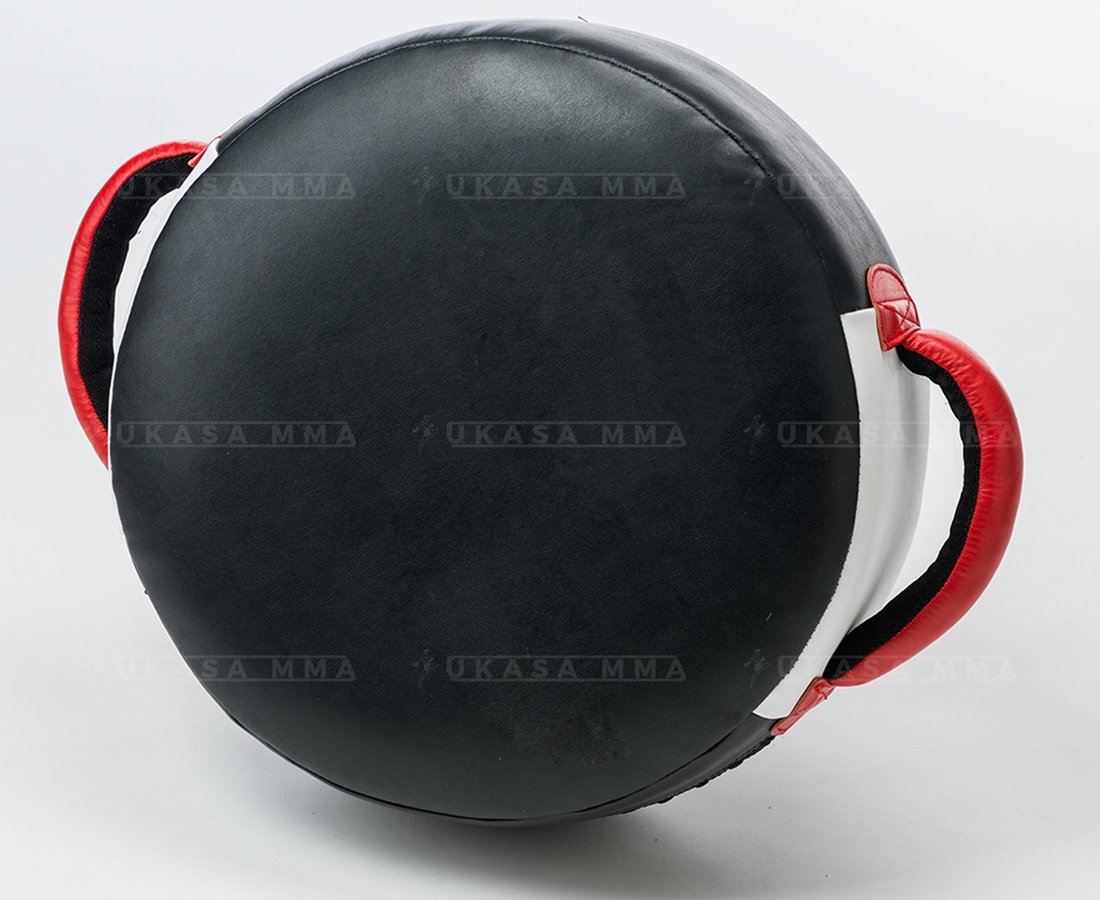 The Target Shield is a core training aid for practicing correct body blows. With two generously padded leather grab handles it allows for a greater use of flexibility within a workout session as a multitude of strikes from all angles can be negated with the correct positioning of the shield allowing the opponent to practise all types of punches elbow and leg strikes to the body and thigh areas. Constructed from layers of air foam cushioning this lightweight shield absorbs power effectively. When used appropriately it may control the speed power and performance of the opponents exercises. Size: 41 cm x 41 cm x 14 cm. Weight: 1.1 kg.
