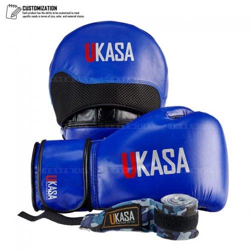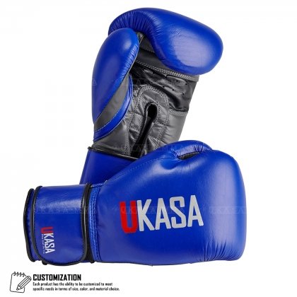The new Ukasa Sparring Glove is made of soft quality leather for flexibility and durability and it features a unique template fit that effectively supports and cushions the fist. The numerous interior cushioned foam layers are padded to provide equilibrium around the strike region and optimal shock absorption. The wrist wraparound strap closure is a heavy duty hook and loop Velcro fitting that provides good support. The thumb is linked to the main body of the glove which prevents it from independently bending backwards if an erroneous punch is performed. The inside fabric lining ensures a highly comfortable fit and the built in grip bar provides additional support. Holes on the inside palm ventilate the hand and provide a steady flow of air.