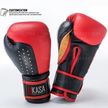 Made from only the best leather hide the glove flexes naturally. The glove is constructed using a variety of foams. The thumb tip is safely linked to the main body of the glove preventing the thumb from working independently and bending backwards if an erroneous punch is made. To allow the hands to breathe the palm contains a ventilated mesh weave material that allows constant air flow to the skin and the moisture-wicking anti-microbial interior lining keeps heat buildup to a minimum. To improve the more natural feel and posture of a clenched fist the glove contains a stitched in cushioned finger grip bar and the pre formed knuckle padded section allows the boxers hand to shut with minimal