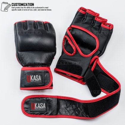The outward striking area is made of real leather which encases varied yet different combinations of foam layer cushioning. The mitts non-exposed section is made of our flexible synthetic cross fibre material. With no thumb the palm has far less material allowing for a more natural grasp and holding posture. The uncovered palm allows for lots of air which reduces heat buildup. The glove features two wrap adjustment methods. The inside adjustment ensures that the glove fits properly around the wrist area.