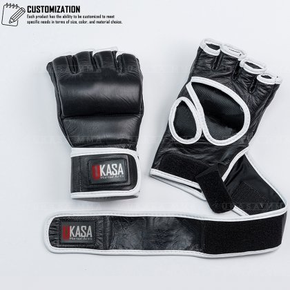 The outward striking area is made of real leather which encases varied yet different combinations of foam layer cushioning. The mitts non-exposed section is made of our flexible synthetic cross fibre material. With no thumb the palm has far less material allowing for a more natural grasp and holding posture. The uncovered palm allows for lots of air which reduces heat buildup. The glove features two wrap adjustment methods. The inside adjustment ensures that the glove fits properly around the wrist area.