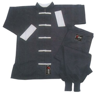 AVAILABLE IN:- Kung Fu Uniform 8-oz In 100% Cotton Drill Dyed “blackâ€Â with Neck, Cuff and Buttons. Trouser Draw String waist & Pounchi Button.